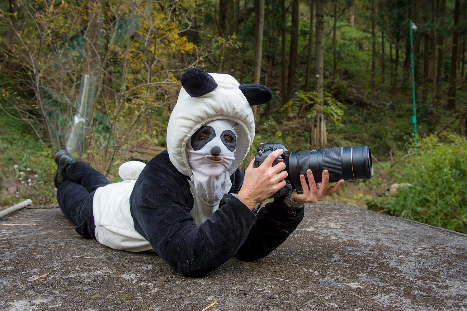 MK: Okay, an interview with you would not be complete without addressing your latest book, Panda Love: The Secret Lives of Pandas. They are a fascinating species with a life that was, for many, unknown until you came along to illustrate them in such a beautiful light. Two questions then; what was this experience like for you, and how long did it take to feel complete? And my second is–the panda suit that you wore while making photographs was amazing. Was this your idea, and how well did it actually work? The images of you on your Instagram page were wild!