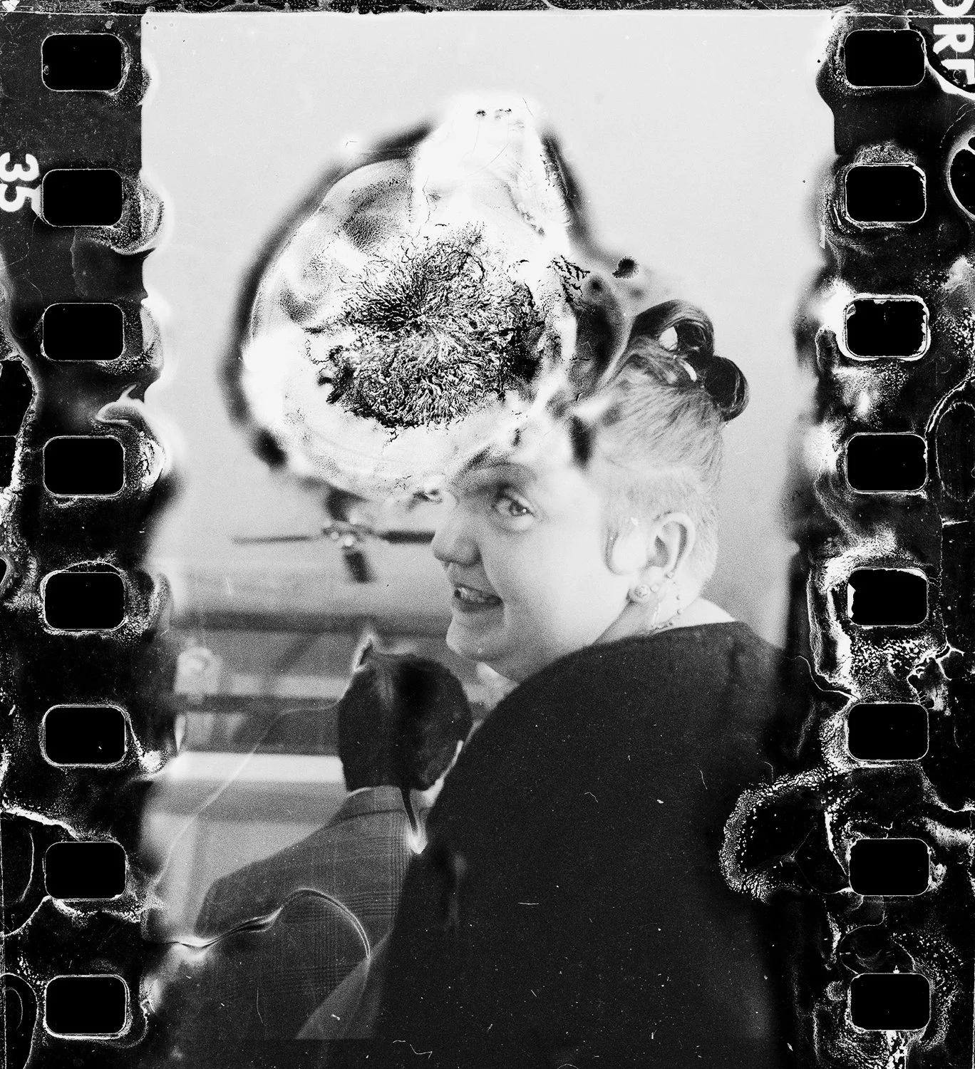 LB: One of the first images that made me pause was one of my self-portraits—the way the water damage had distorted it really spoke to me. Originally, it was the last negative on a roll of film, so it was just half an image. It was still me, recognizable as that girl in her 20s who identified as a photographer and artist, but it was also not me, someone who had been altered.